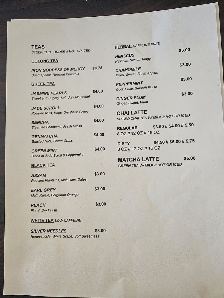 Several choices, Brewed to order. ounces. We only recommend teas with an iced.